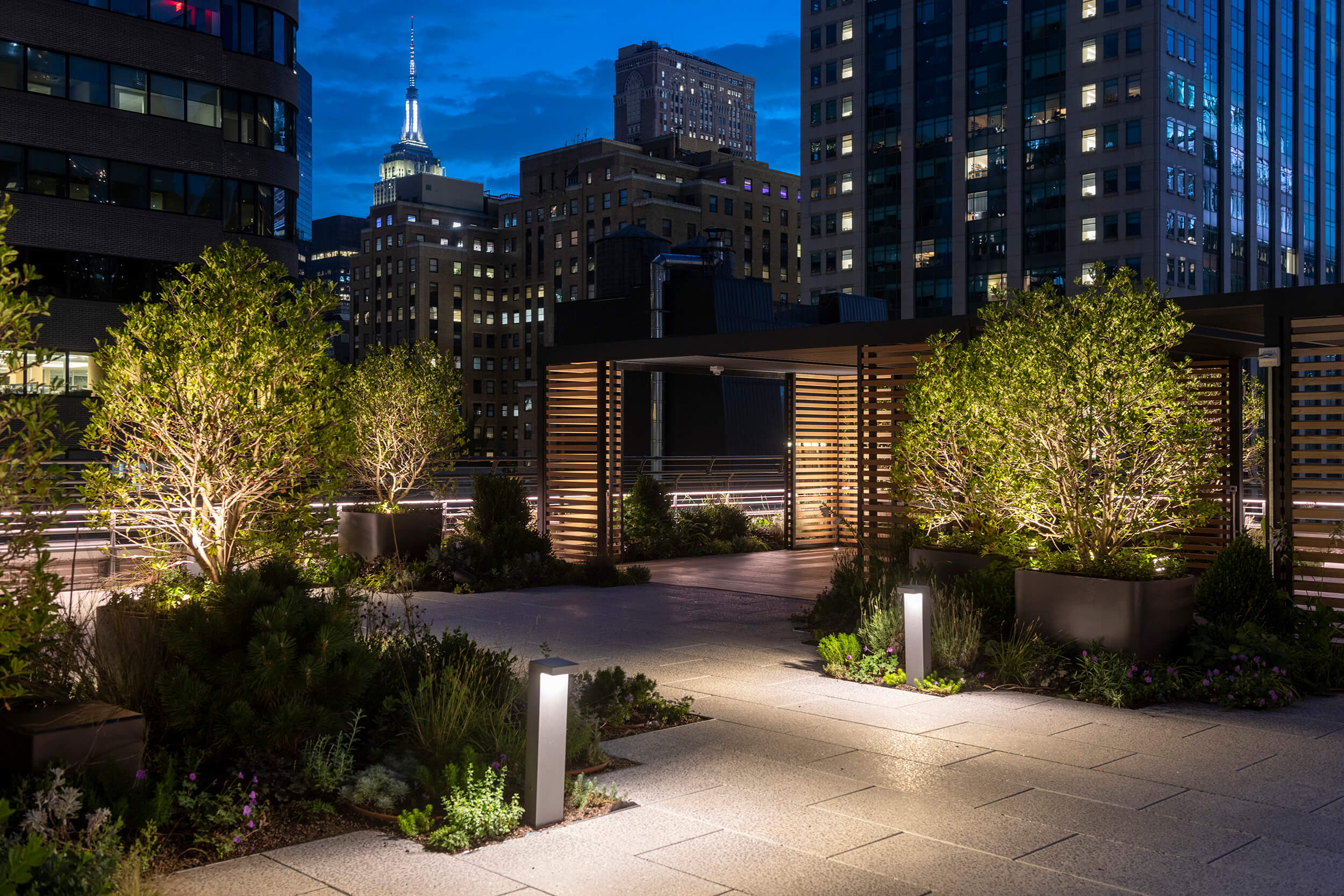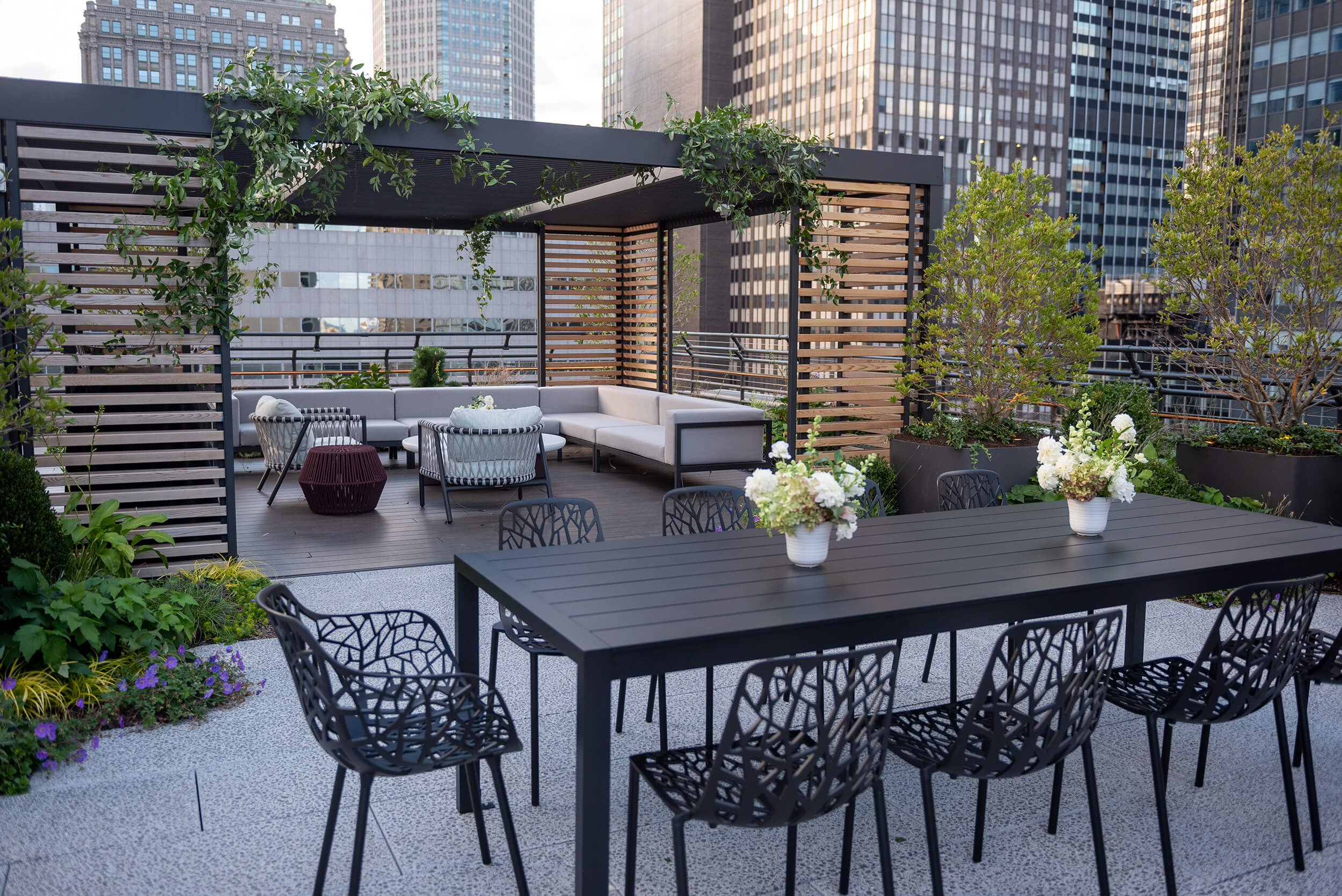 360-degree views of the city from the 22nd floor with a 7,000-square-foot fully landscaped and artfully furnished terrace are open to tenants all day. With the vitality of green spaces in mind, this set-back terrace can also accommodate events and invite alternate areas of productivity, while other floors offer private roof terraces contiguous of leased spaces.